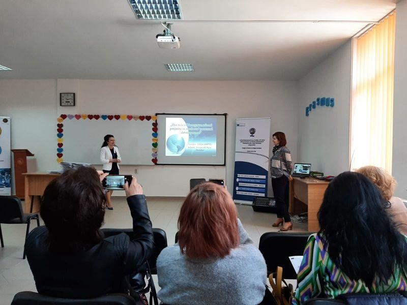 Sesiunea de lucrări a fost organizată atât fizic, în Sala de festivități a Liceului “Regina Maria”, cât și online, pentru profesori invitați din școlile europene partenere:
