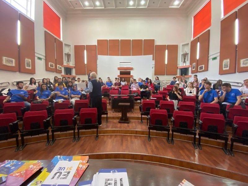 Aceștia au primit informații utile despre Uniunea Europeană și au participat la o dezbatere despre voluntariat. Formatul întâlnirii a fost unul deosebit, domnul Radu Căjvăneanu implicând elevii în discuții antrenante, cu tact, profesionalism și umor. Materialele folosite i-au încântat pe elevi, și nu numai, acestea fiind de un real folos în folosirea. atât a competențelor hard, dar mai ales a competențelor soft (leadership, lucrul în echip, intuiția, răbdarea, adaptabilitatea).