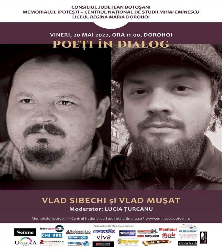 „Poeți în dialog”, activitate moderată de doamna Lucia Țurcanu, a presupus prezența poeților Vlad Sibechi și Vlad Mușat. Contactul cu lirica domnului Vlad Sibechi, radiografiată de Mircea Diaconu, cu „rădăcinile în străinătatea suprarealistă” și trecută prin „optzeciștii substanțiali”, dar și provocarea flash fiction-ului lui Vlad Mușat au generat numeroase interogații și aplauze spontane. Întrebările adresate de elevi, boboci ori viitori absolvenți, au stat, deopotrivă, sub semnul curiozității și al dorinței de informare, dar au fost, în același timp, încercări reușite de a pătrunde în ispititoarea lume a creatorilor de literatură. Dialogul poeților a fost potențat de intervenții calitative ale elevilor, de tipul – „Cum decurge actul creației?”, „Care au fost influențele literare care v-au marcat parcursul liric?”, până la subtilități precum: „Unde se intersecteză filosofia cu actul creației, acesta din urmă fiind rezultatul unei introspecții sau al unei transcendențe în gândire?, „Care este dimensiunea ridicolului în viața unui poet?” ori „Eminescu este un om sau o cultură?”.