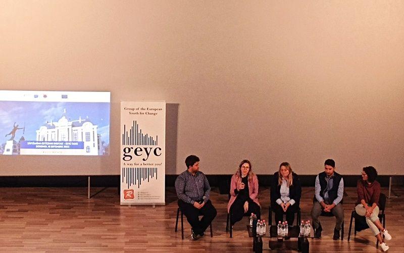 Cine a participat? Moderatorul evenimentului, Gabriel Brezoiu, Manager general GEYC, membru al rețelei EuroPeers, vorbitorii: Alexandru Lache, Vicepreședinte GEYC, responsabil de portfoliul „Antreprenoriat și angajabilitate”, Ioana Tatarciuc, Vicepreședinte GEYC, responsabil de portfoliul „Sustenabilitate”, membru al rețelei EuroPeers, Simona Rață, coordonator proiecte voluntariat GEYC și fost stagiar Blue Book la Comisia Europeană, membru al rețelei EuroPeers, Alina Alupoaie, profesor coordinator al activității GEYC în liceul partener, Luciana Murăreanu, elevă a „Liceului Regina Maria”, care a participat deja la proiecte de mobilitate europeană, iar publicul țintă, elevi și profesori reginiști.
