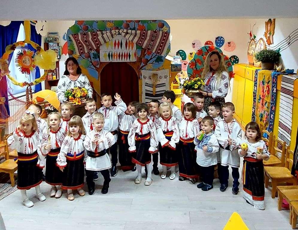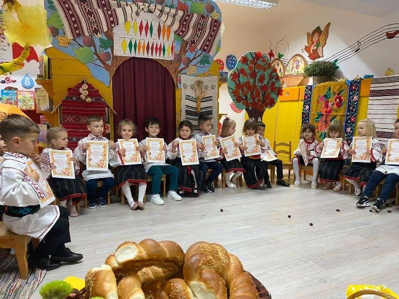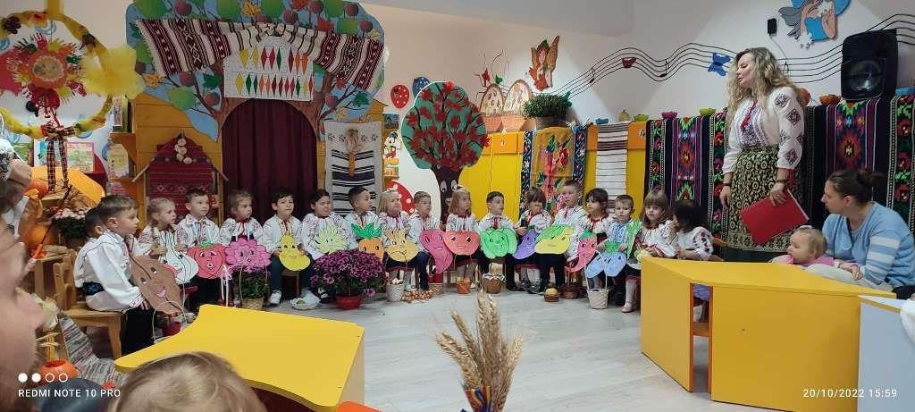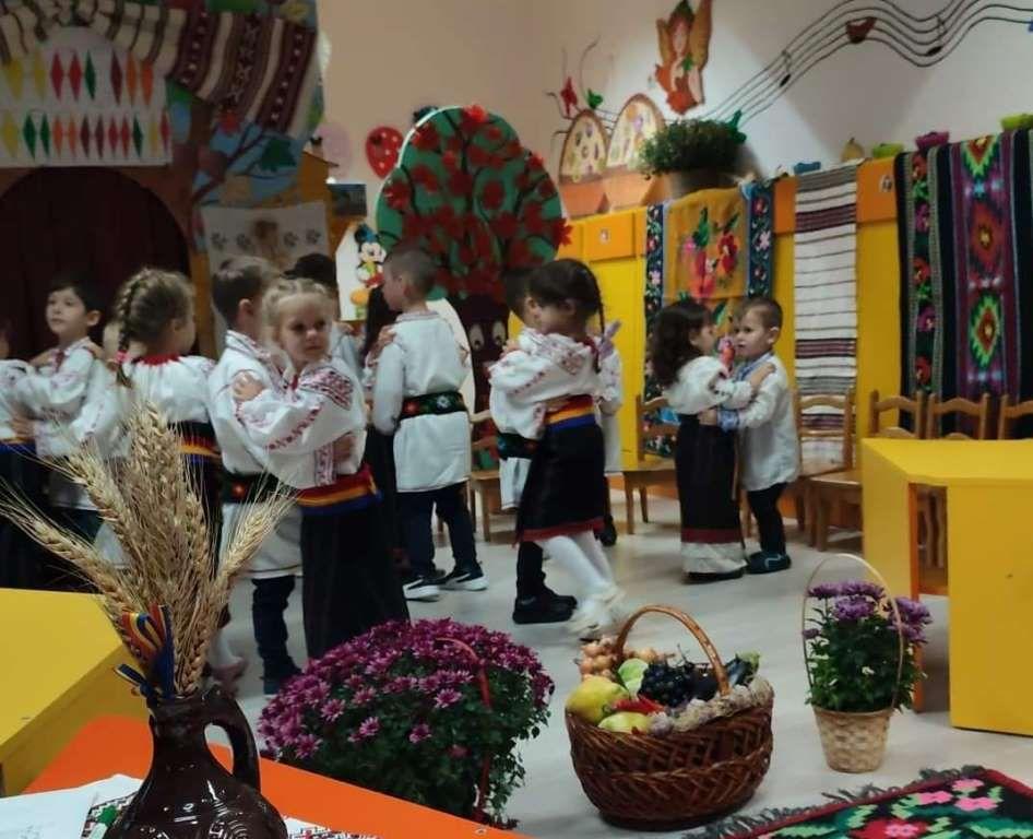 Preşcolarii au îmbrăcat frumosul port popular şi au demonstrat cât de multe cunoştinţe au acumulat pe parcursul proiectului tematic „Magia toamnei”, au cântat, au recitat şi au dansat pe ritmuri populare. În final preşcolarii au fost calduros aplaudaţi şi lăudaţi de părinţi, fraţi şi bunici.