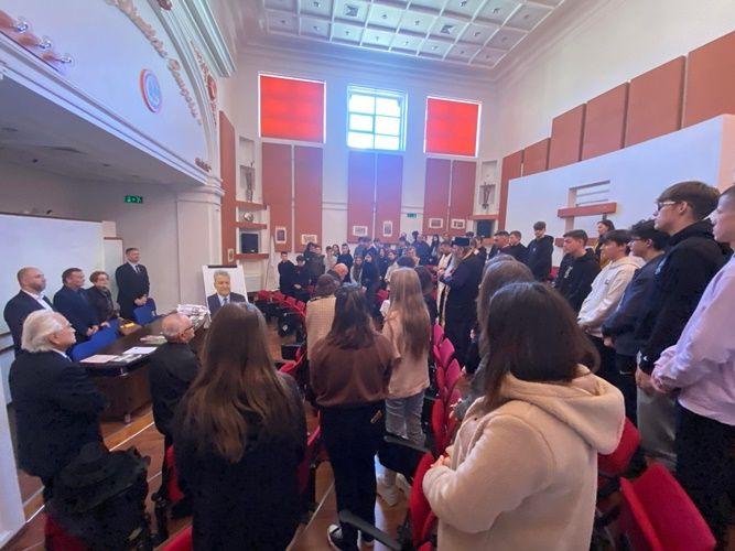 Preotul dr. Florin Tuscanu a numit organizarea evenimentului “o sărbătoare a recunostinței, un popas cultural” precizând că se întâmplă, din ce în ce mai rar, să “îi scoatem din neuitare pe cei care au contribuit la cultura poporului român”. A felicitat colectivul Colegiului Național pentru “această minunată decizie: este o lecție de istorie, de cultivare a demnității de creștini iar astăzi suntem uniți în gând de rugăciune și cinstire.”