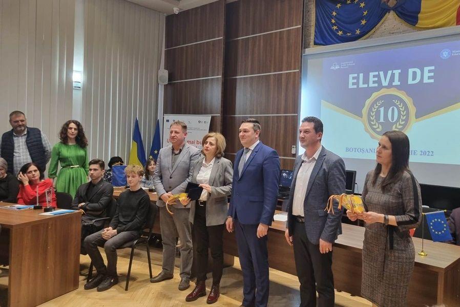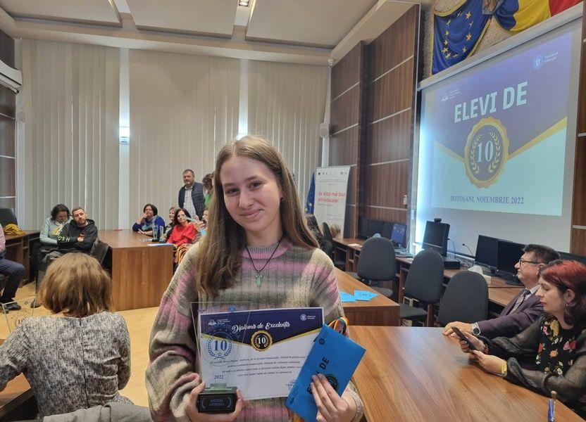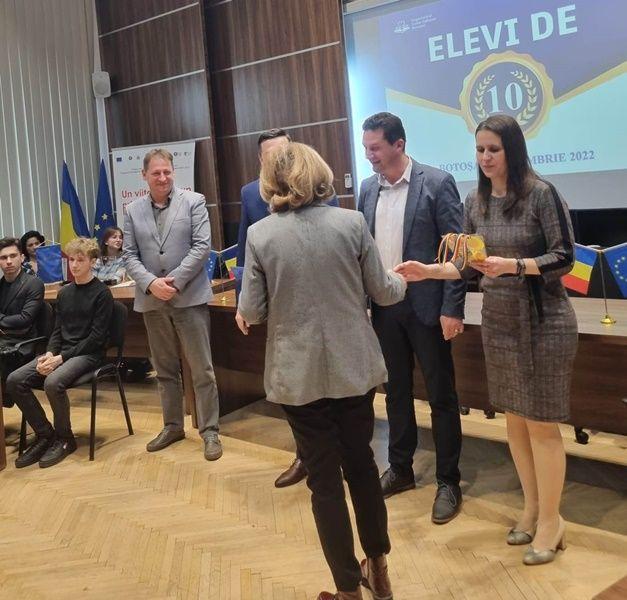 Cele două eleve de 10 din Dorohoi, Andreea Anghel, de la Școala Gimnazială „Mihail Kogălniceanu” și Anamaria- Adelina Gîrțu, de la Liceul „Regina Maria”, alături de părinți și reprezentanții instituțiilor de învățământ pe care le-au absolvit, au primit premii în bani de la Ministerul Educației, diplome și câte un trofeu, de la Inspectoratul Școlar Județean, în semn de apreciere și recunoaștere a muncii și pasiunii pentru cunoaștere.