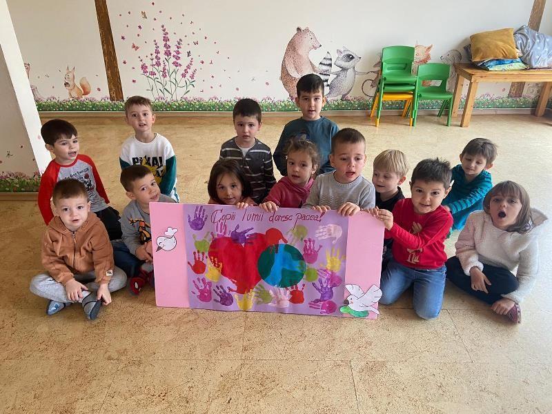 În încercarea de a oferi un strop de licărire în inimile suferinde ale copiilor din Ucraina, copii români și ucraineni au realizat materiale care să simbolizeze PACEA – un cuvânt atât de scurt, dar cu o însemnătate atât de profundă! Și pentru că noi, oamenii, aidoma plantelor și animalelor, suntem făpturi ale naturii, năzuim să trăim în pace și armonie cu tot ceea ce este viu, așa că am donat mâncare pentru câinii din adăpostul din Dorohoi încercând astfel să le răsplătim prietenia acestor suflete fidele omului.
