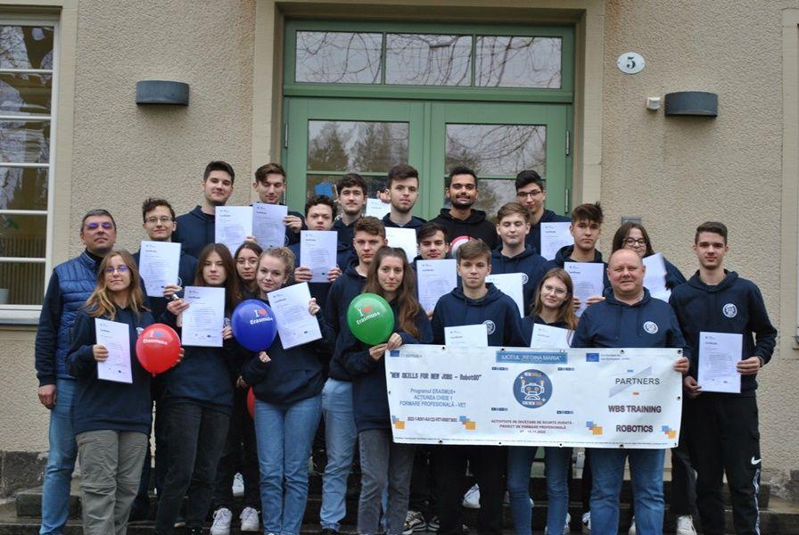Pasiunea elevilor de la Liceul „Regina Maria” pentru domeniul roboticii este cultivată de câteva generații, fiecare an școlar aducând noi experiențe și provocări. Astfel, 20 de elevi de la clasele de Matematică-Informatică au participat la un curs complex de formare, în perioada 7-18 noiembrie, oferit de WBS Training Germania, în cadrul Proiectului „New skills for new jobs - RobotGO”, 2022-1-RO01-KA122-VET-000073693, finanţat de Uniunea Europeană în cadrul Programului Erasmus+, Formare profesională (VET).