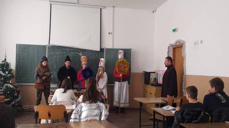 Lecția „Tradiții de Crăciun” a fost coordonată de Pr. Prof. Mîndru Cristian la clasa a-VI-A și a readus în sufletele noastre bucuria întrupării Mântuitorului Iisus Hristos. Prin desenele realizate de elevi cu multă acuratețe și îndemânare, au fost reiterate momentele și persoanele prezente la marele eveniment din Betleem: Fecioara Maria și Pruncul Mesia, Iosif, Îngerii, Păstorii, Steaua de la răsărit, staulul, animalele ce au încălzit pruncul și cei trei Magi. Desigur din acest cadru nu au lipsit colindele interpretate cu multă gingășie de către elevii coordonați de părintele profesor în colaborare cu alți colegi.