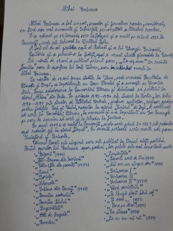 În acest an, în care se împlinesc 173 de ani de la nașterea Poetului Nepereche, vibraţia acestui moment omagial s-a transmis şi dinspre sufletele elevilor Școlii Gimnaziale „Mihail Kogălniceanu”, din Dorohoi, care i-au purtat lumina prin gândurile adresate întru retrăirea creaţiei sale. În săptămâna 9- 13 ianuarie 2023, prin încercări literare, recitări, creații plastice, înterpretări muzicale, elevii claselor primare și gimnaziale au marcat Ziua Culturii Naționale și au pătruns în nemurirea eminesciană, rostind numele poetului considerat „marele copac, din care toți ne tragem.” (Lucian Blaga)