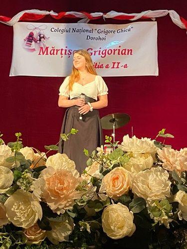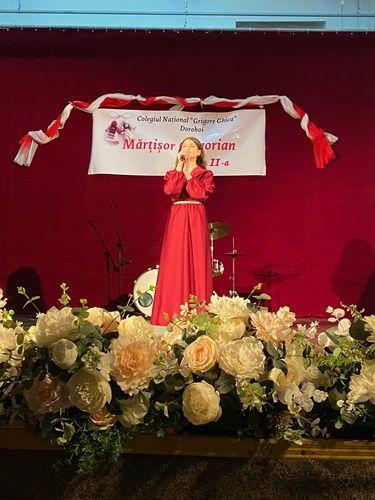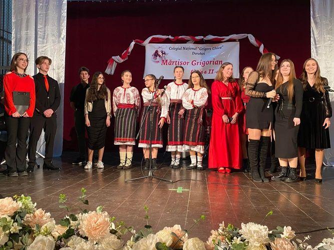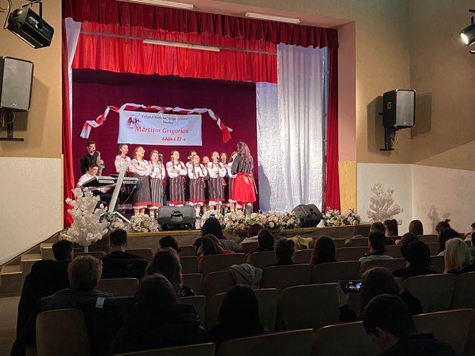 Elevii Hrinciuc Carina Cezara și Liteanu Cristian au prezentat momentele artistice exprimate de elevii talentați ai colegiului: Grup vocal folcloric, dansuri populare, Țari Maria, Scripniciuc Andreea, Hariga Eduard, Rumega Roxana, Nichiforeac Ana, Mihai Lucian, Berbinschi Adelina, Stan Eliza, Antochi Andreea, Agrăpinei Denisa, Popa Alexandru, Mihăileanu David, Moșneguțu Rareș, Panțiru Răzvan, Rogozneac Evelina, Vicol Bianca, Bojoga Irinel.