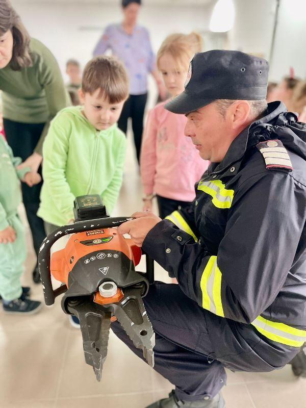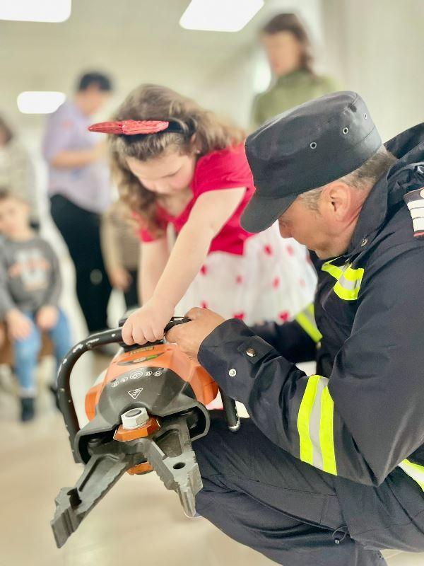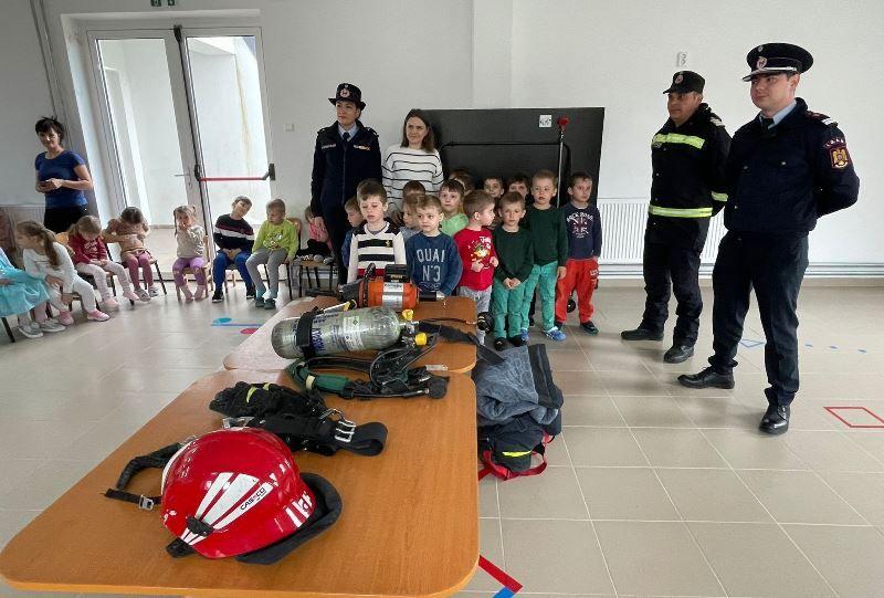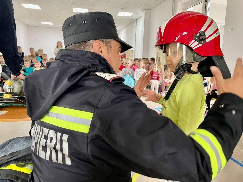 În același timp, le-au arătat autospecialele folosite pentru stingerea incendiilor sau pentru salvarea persoanelor implicate în diferite evenimente ce le pot pune viața în pericol și i-au lăsat să probeze costumele de intervenție.