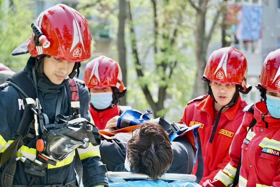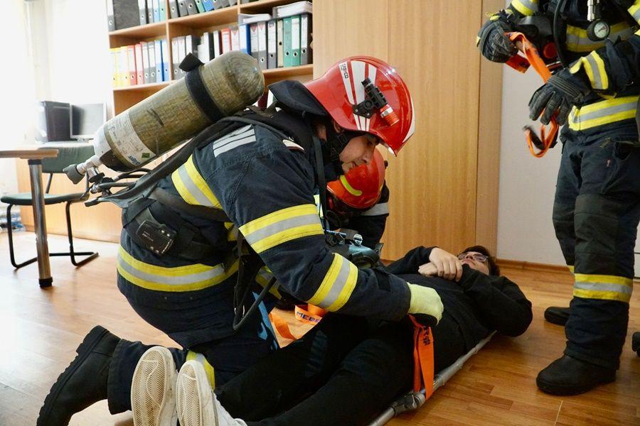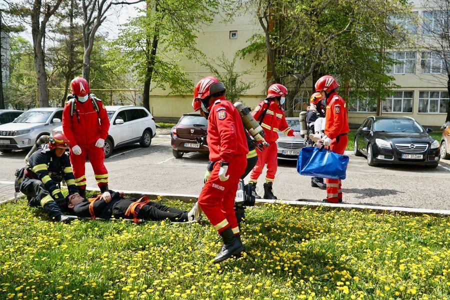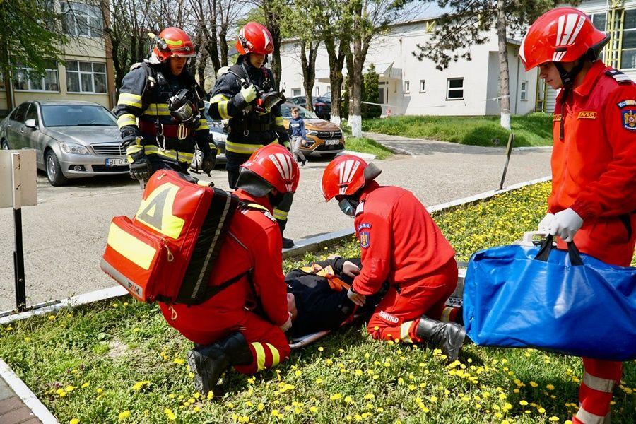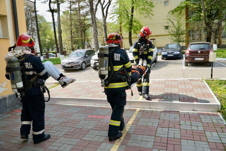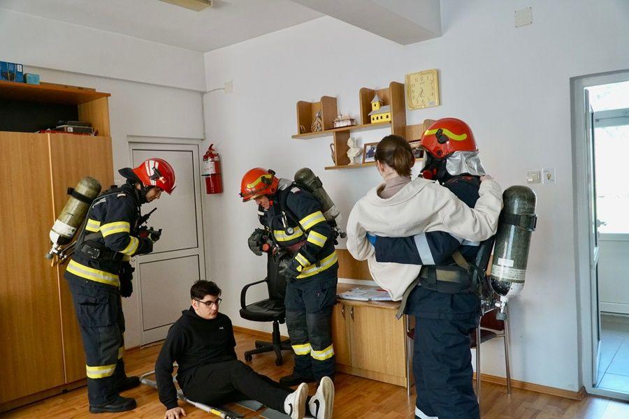 Pentru ca exercițiul să fie cât mai aproape de realitate, a fost simulată și salvarea a două persoane dintr-o sală de clasă.