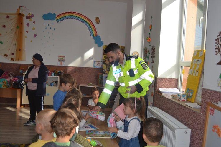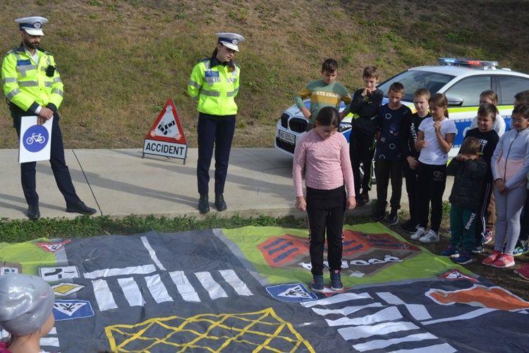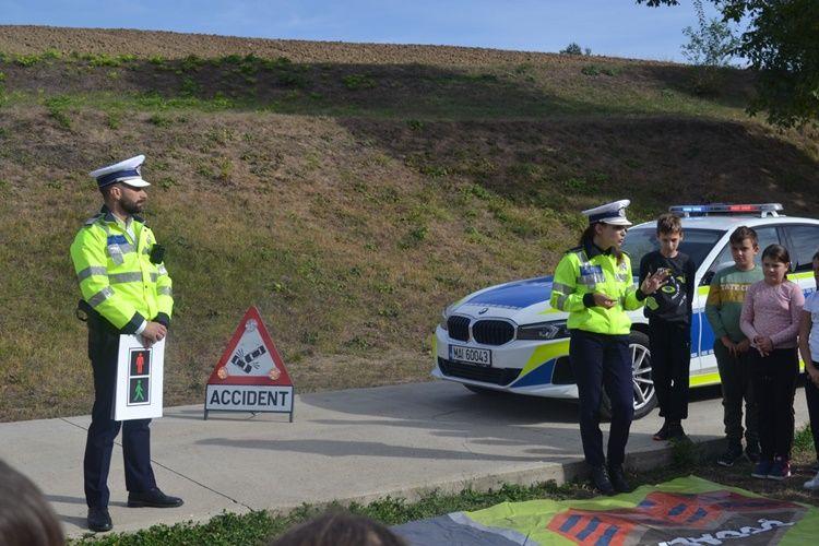 Polițiștii le-au prezentat copiilor regulile de circulație și importanța respectării acestora  pentru prevenirea implicării în evenimente rutiere nedorite.