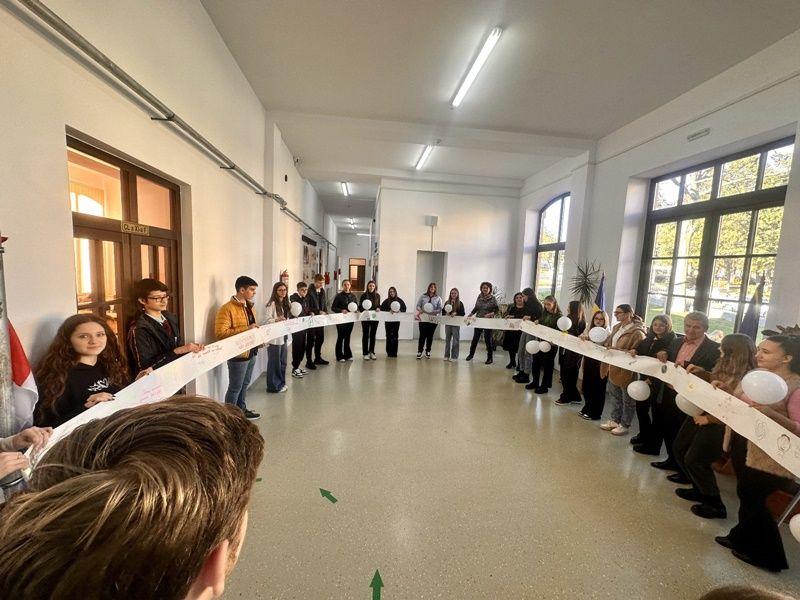 Elevi din clasele a VIII-a, a IX-a și a XII-a din cele două unități de învățământ reprezentate de prof. Gavriluță Paula, prof. Șlincu Georgel Costel și prof. Pădurariu Petru Silviu, sub îndrumarea următoarelor cadre didactice: prof. Angheluș Marcel, prof. Ciobanu Monica, prof. Drăghici Cristina Ionela, prof. Ifrim Monica Vasilica, prof. Nicorici Sonia și prof. Stegaru Viorica, au desfășurat o serie de activităţi având ca obiective recunoașterea beneficiului păcii în regiune, la nivel european și mondial, formarea abilităților relaționare ca subiect social cu atitudini pozitive față de semeni, manifestarea interesului pentru promovarea libertății în lume, manifestarea toleranței și acceptării față de ceilalți indivizi ai societății, transmiterea mesajelor de pace prin diverse mijloace: desene, studii de caz, scrisoare–fluviu, flyere.