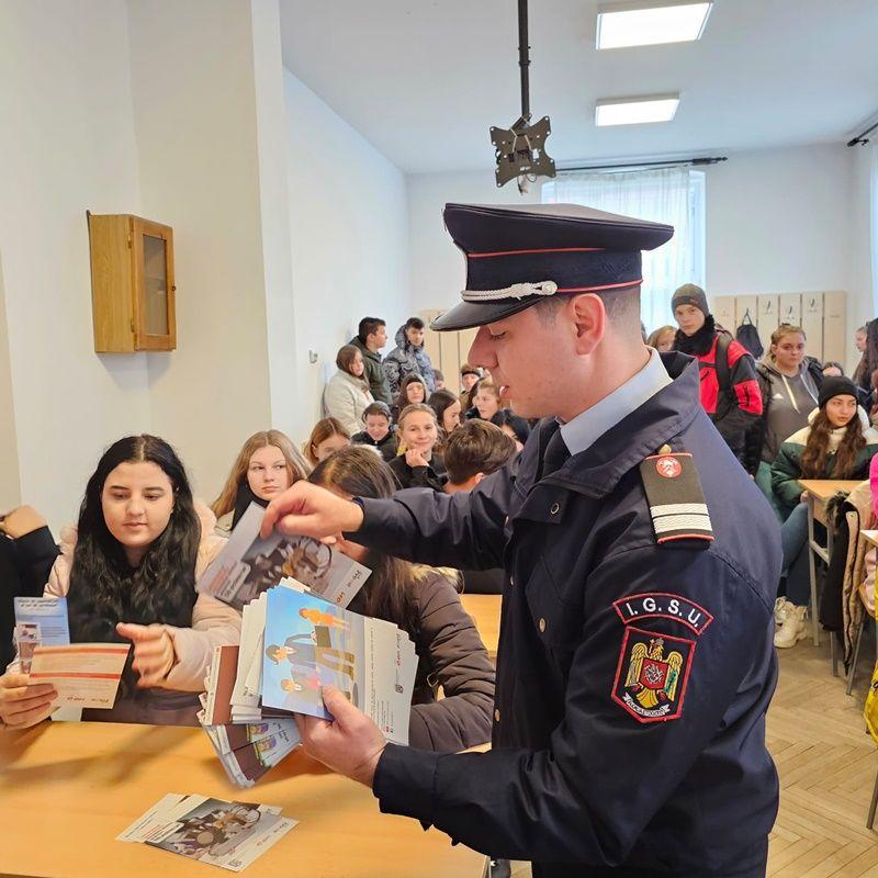 Aici, reprezentanții Inspectoratului pentru Situații de Urgență „Nicolae Iorga” al Județului Botoșani le-au transmis elevilor următoarele sfaturi în cazul producerii unui incendiu în incinta școlii.