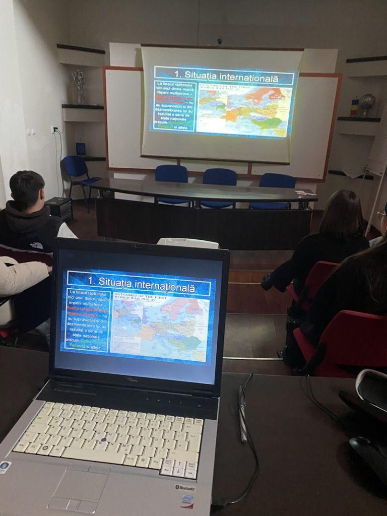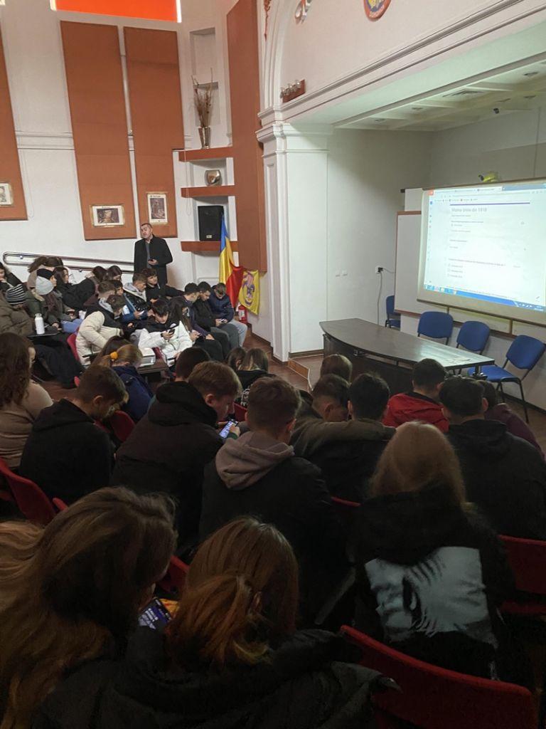 Elevele din clasa a XII-a G, coordonate de d-na prof. Baroi Lidia au prezentat “Marea Unire din 1918” – într-o manieră modernă și interactivă, cu scopul de a ajuta participanții să-și consolideze cunoștințele referitoare la etapele înfăptuirii Marii Uniri din anul 1918 și rolul personalităților, făuritorii “României Mari”. De asemenea, participanții au fost provocați să completeze un quizz, realizat cu ajutorul instrumentelor digitale integrate în platforma Classroom.