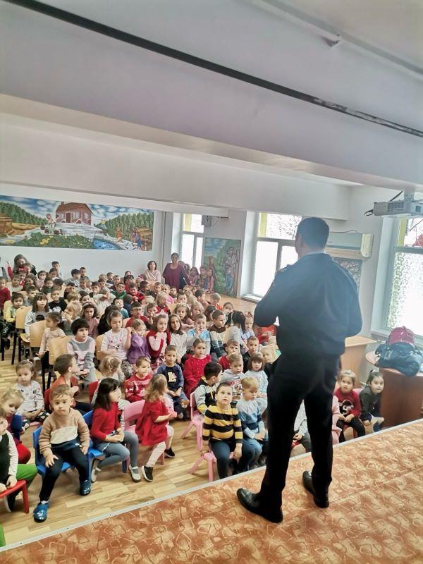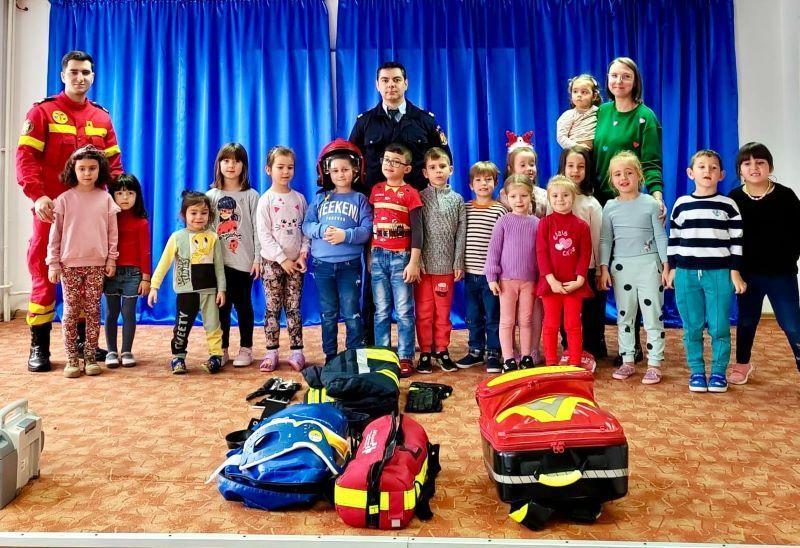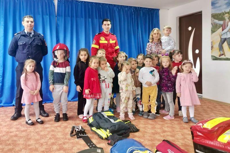 Cu ochii strălucind de curiozitate, cei mici au învățat cum să reacționeze în cazul producerii unui incendiu sau cutremur și cum să își protejeze viața lor și a celor din jur în cazul unei situații de urgență.