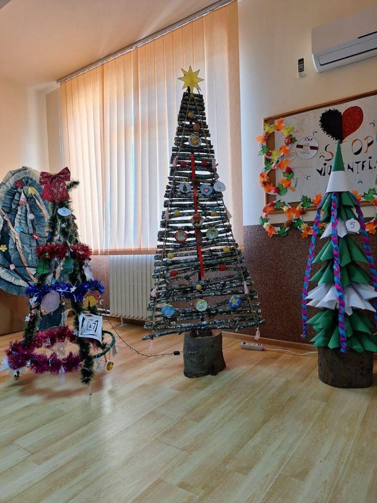 Elevii școlii au transmis prin intermediul brăduților împodobiți, frumusețea Sărbătorilor de Iarnă.