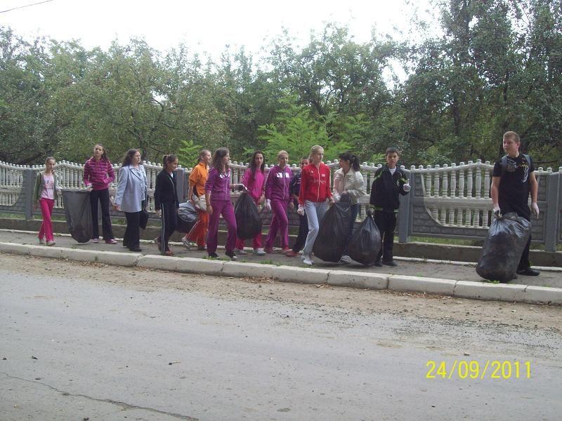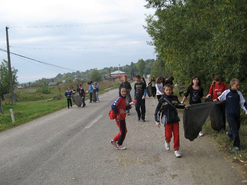Echipaţi cu saci menajeri şi mănuşi provenite din surse proprii, elevii au adunat deşeurile existente în zona pădurii Pomîrla şi Racovăţ, la ieşirea spre satul Dumbrăviţa, în satul Gheorţeni de-a lungul drumului judeţean, ca şi în livezile şi parcul central al comunei.