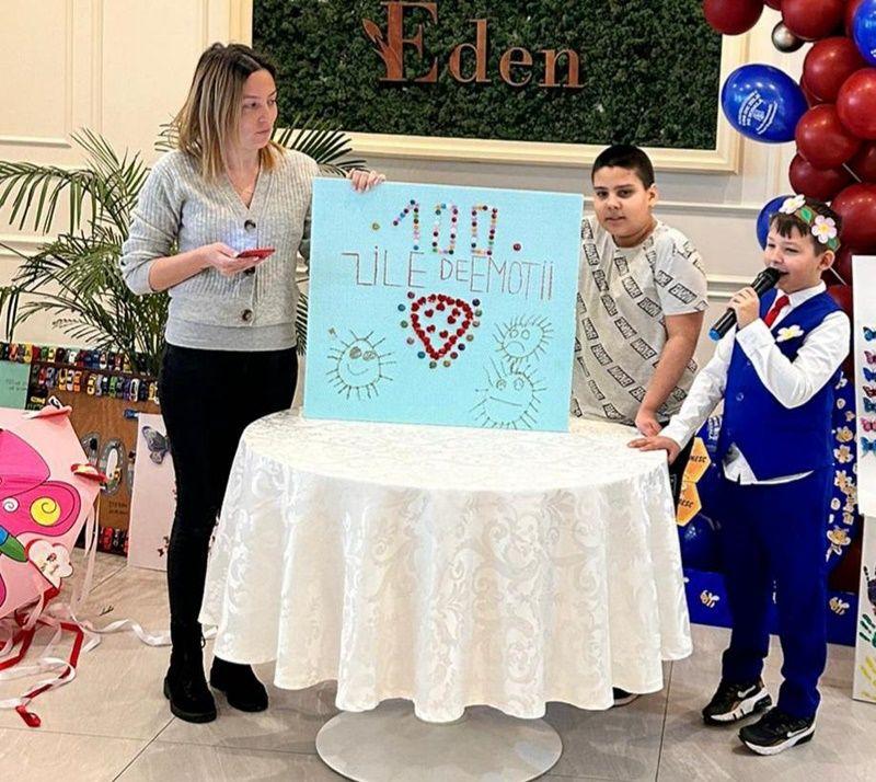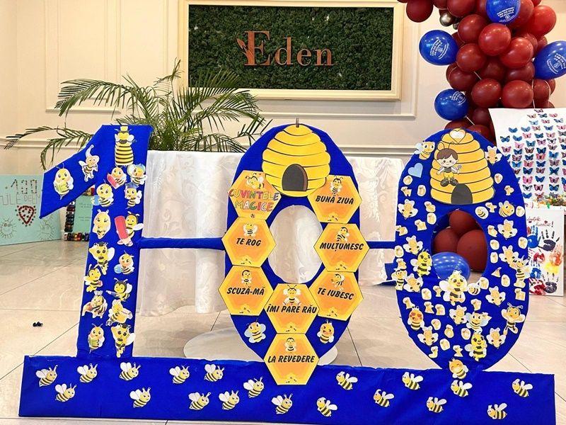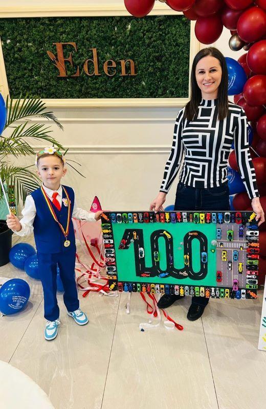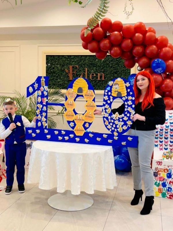 Rând pe rând,s-au derulat surprize de tot felul pentru fiecare moment al activităților propuse. Pentru început, elevii clasei pregătitoare C Step by Step au primit coronițe cu flori ale primăverii. Apoi, și-au prezentat proiectele realizate, cu multă muncă și perseverență, prin colecţionarea a 100 de obiecte pe parcursul celor 100 de zile. Acestea au fost admirate şi de părinții care au fost prezenți la această frumoasă sărbătoare. Copiii au fost încurajați să pună întrebări, să-și dezvolte creativitatea și personalitatea. Prezentarea colecțiilor personale îi ajută pe copii să-și exerseze abilitatea de a vorbi în public. Este oportunitatea de a face învățarea mult mai atractivă pentru copii, utilizând strategii activ-participative și implicând părinții ca parteneri în educație. Bucuria de a fi împreună,de a ne simți ca într-o mare familie,a făcut ca emoțiile să dispară și să trăim cu intensitate fiecare clipă. Pentru adevărate opere de artă având ca temă cifra 100, albinuțele au fost recompensate cu medalii, diplome și baloane personalizate. A urmat un program artistic în care cei mici au cântat minunat și au dansat.