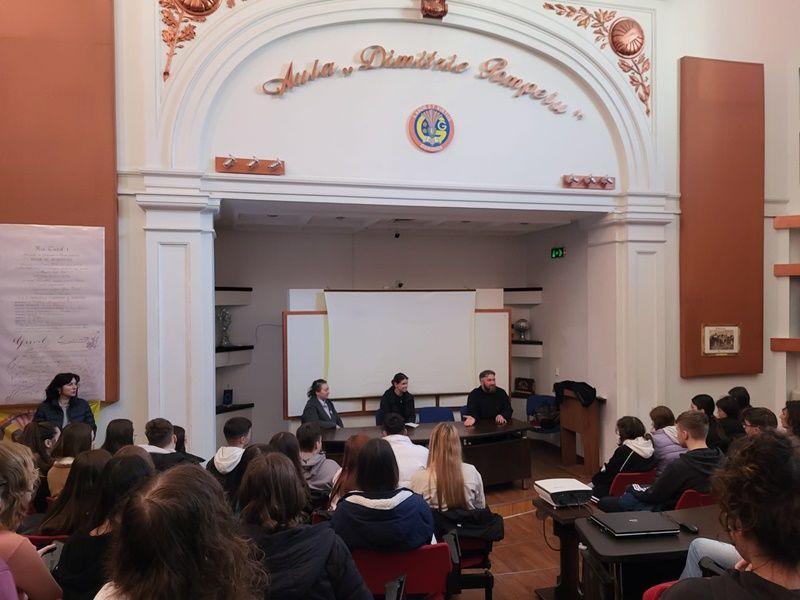 Vineri 22 martie 2024, doamna doctor Ioana ALEXANDROAIE din cadrul Spitalului Județean Mavromati și doamna psiholog Ionela VLASINESCU de la Direcția Generală de Asistență Socială și Protecția Copilului, Botoșani, însoțite de părintele protopop pr. prof. Ionuț Ștefan APETREI, au susținut o conferință cu tema ”Împreună Construim Pentru Viață”, în cadrul căreia elevii au putut adresa întrebări și primi consiliere cu privire la darul vieții, concepție, prevenție, acceptare și toleranță față de toți cei din jur, inclusiv față de copiii care se nasc cu sindrom Down sau alte dizabilități.