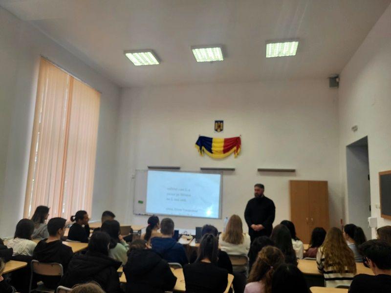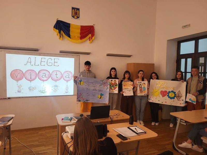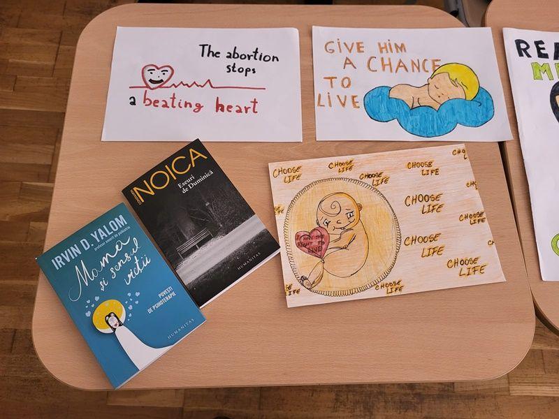 Prof. Gianina CUCOREANU a coordonat atelierele de lectură ”Spune-mi o poveste pentru Suflet!” (clasa a XI-a C), ”Mama și sensul Vieții” (clasa a XI-a D), dezbaterea Pro Life pe baza unor proiecții de filme de scurtmetraj (clasa a X-a A ), atelierul de desenat pancarte si mesaje Pro Viață (clasa a XI-a C), și seminarii pe tema Adopției ca șansă la Viață (clasele a IX-a B, a IX-a A). La ora de consiliere și orientare din 21 martie 2024, clasa a XII-a B a avut plăcerea de a-l avea ca invitat pe părintele protopop pr. profesor Ionuț Ștefan APETREI, care le-a vorbit copiilor despre Darul Vieții din perspectiva teologică, precum și despre misiunea organizației Pro Vita și importanța voluntariatului.