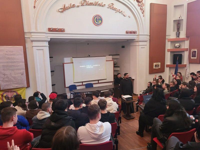 Activitățile de amploare s-au desfășurat în Aula colegiului, cu participarea cadrelor didactice și a elevilor din toate clasele, având ca invitați preoți, profesori și medici.