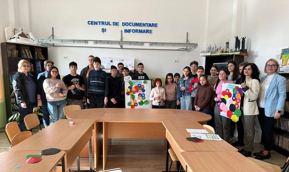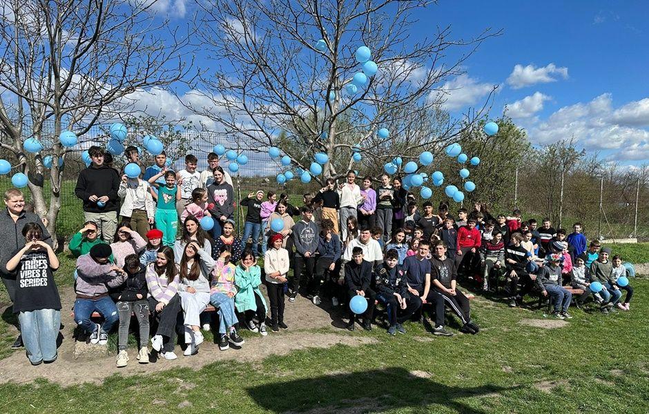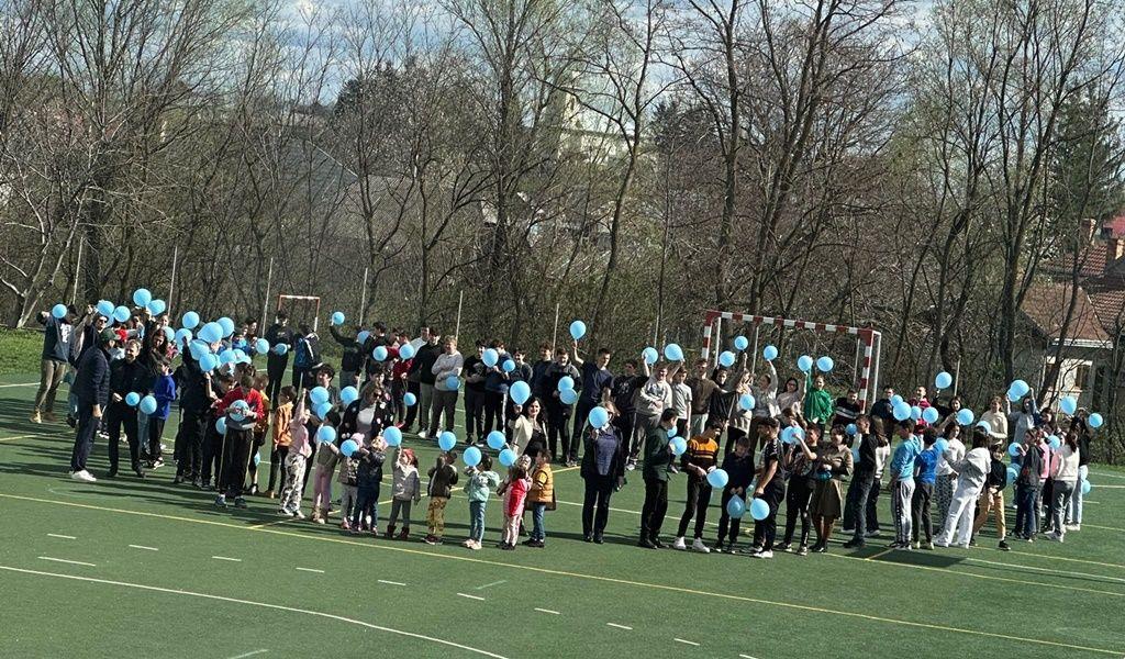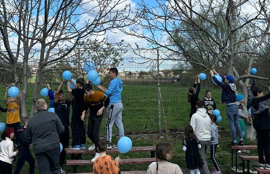 Cu acest prilej, elevii clasei a VIII a B de la Școala Gimnazială Nicolae Iorga împreună cu musafiriilor, au realizat un poster din flori, iar pe petalele florilor au scris mesaje de încurajare și acceptare în semn de solidaritate cu persoanele care suferă de această tulburare. În continuarea activității, pe terenul de sport, elevii claselor V – VIII au format o inimă din baloane albastre cu care, la final, au impodobit ramurile unui copac din curtea scolii.