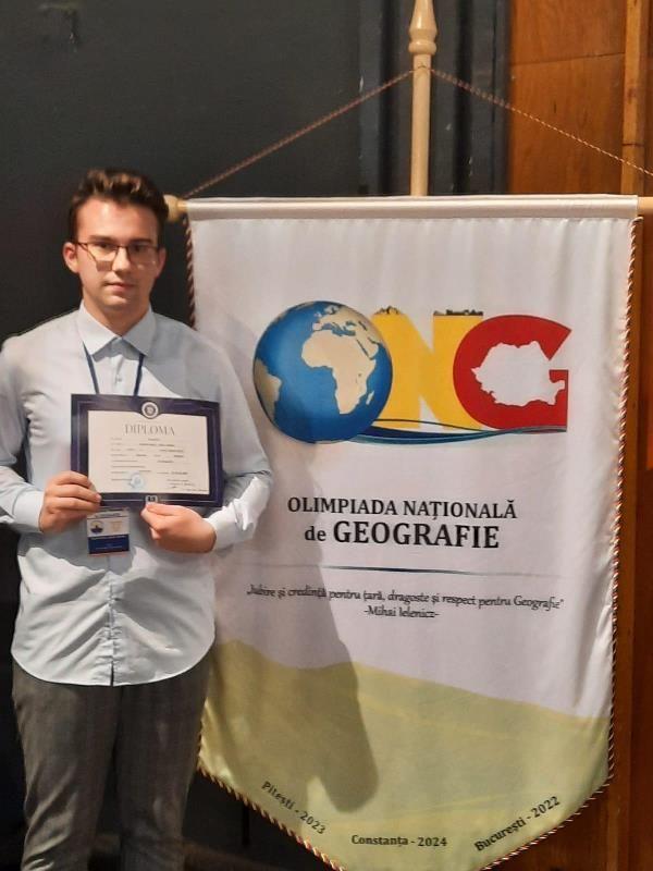 Cei doi elevi de clasa a IX-a, coordonați de d-na profesoară, Ștefan-Antonio Nacu și Yasmina-Elena Vițalariu, au depășit cu brio provocarea primei olimpiade naționale ca liceeni și au obținut punctaje excelente (88,88 și 87,25puncte). Performanța lor le-a adus câte un Premiu special și bucuria de a ajunge în elita pasionaților de geografie.