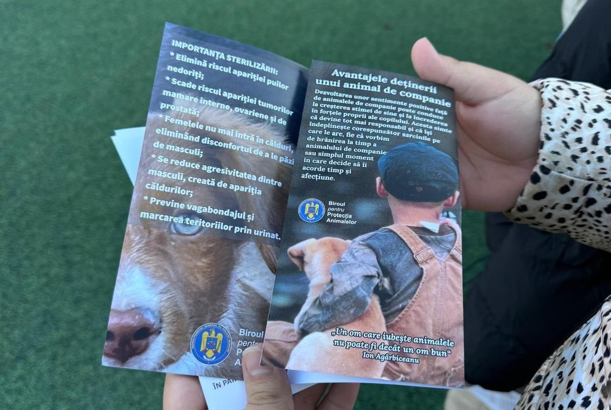 De asemenea, au fost împărțite pliante ce conțin informații utile cu privire la drepturile animalelor, responsabilitate deținerii animalelor de companie și rolul lor în dezvoltarea armonioasă și echilibrată a personalității copiilor.
