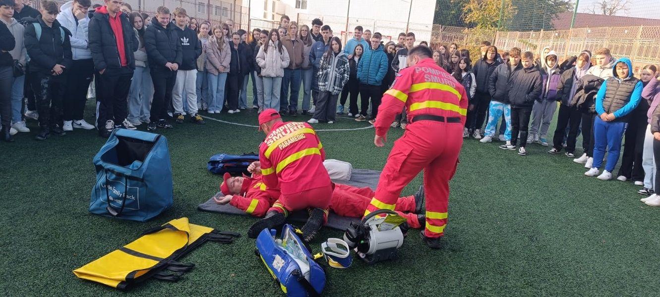 Cunoașterea măsurilor de prim ajutor poate face o diferență crucială în situații de urgență. Plutonier adjutant, Malenchi Ioan, Plutonier, Boteanu Laurențiu, și Plutonier major, Ciobanu Alexandru, în calitate de reprezentanți ai Inspectoratului pentru Situații de Urgență „Nicolae Iorga”, Botoșani, au prezentat tehnica din dotare a autospecialelor SMURD, dar și o serie de măsuri esențiale care pot salva vieți. Câteva dintre tehnicile cele mai importante de prim ajutor pe care orice persoană ar trebui să le cunoască au fost aplicate sub forma unui joc de rol de către elevii voluntari. (Comunicat echipa de coordonare a activității).