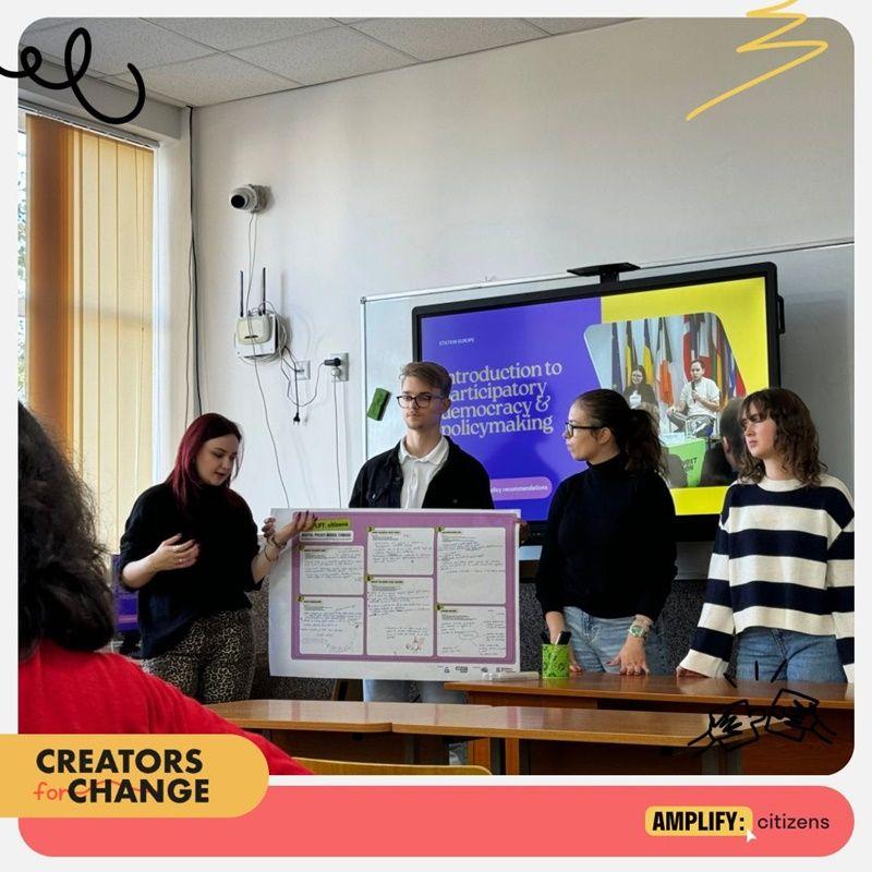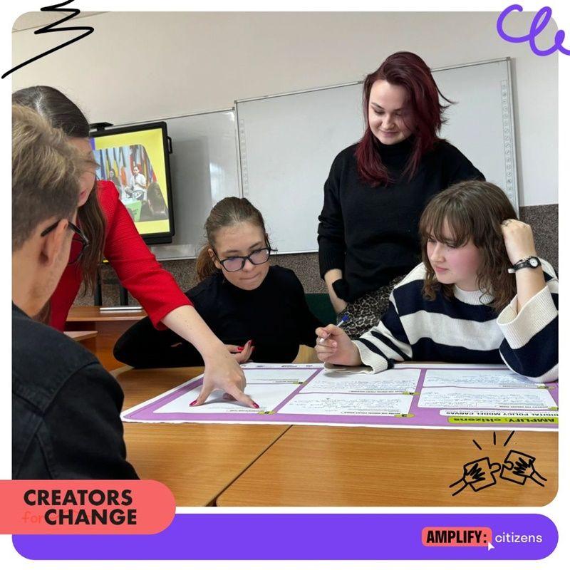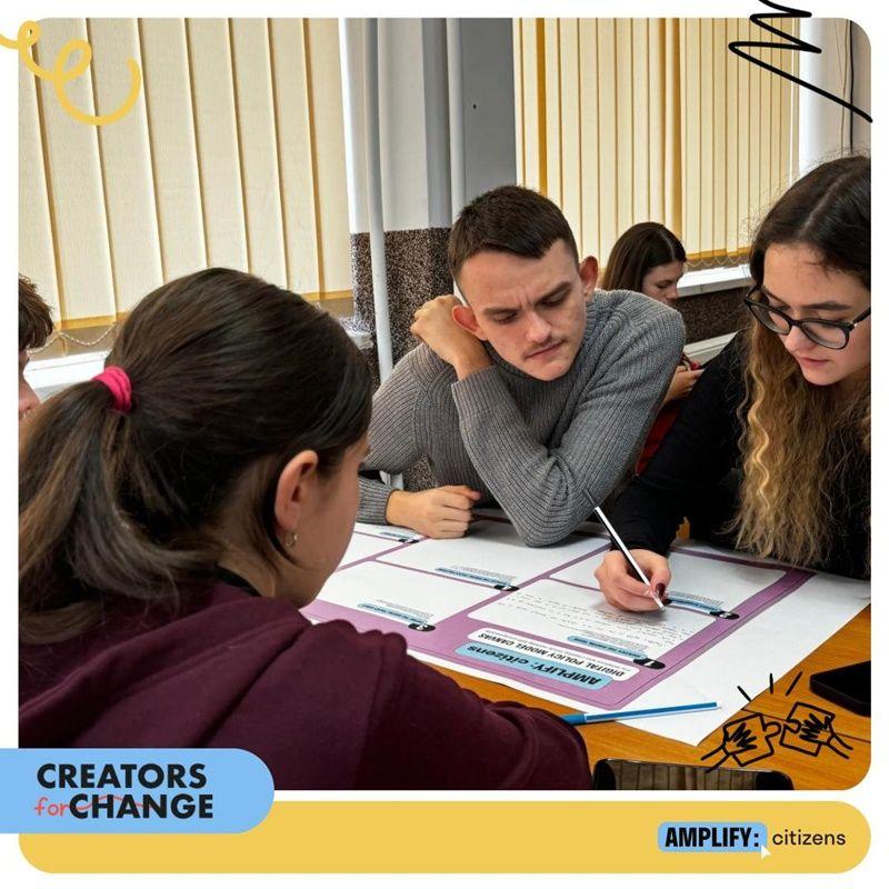 Creators for Change este un grup vibrant și incluziv de tineri cu vârsta între 16-25 ani care conduc schimbări pozitive prin educație, creativitate și activism. Voluntarii organizează campanii de comunicare, colaborează pentru a implementa ateliere, își reprezintă colegii în evenimente naționale și europene, creează content util, se angajează în activități creative și lucrează în contexte educaționale.