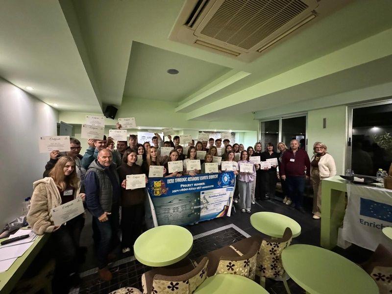 În perioada 28/10/-08/11/2024, 30 elevi din clasele a-X -XI-a, liceu și școală profesională: Tehnician in industria alimentară, Tehnician in gastronomie, Brutar-patiser, Ospătar-chelner, Mecanic auto și Mecanic agricol au participat la un stagiu de pregătire practică în Paralia- Katerini, Grecia, cu organizația de primire Euro Education Services, în cadrul proiectului Erasmus+2024-1-RO01-KA121-VET-000203518, Anul 3 Acreditare Erasmus+ 2021-1-RO01-KA120-VET-000043697.