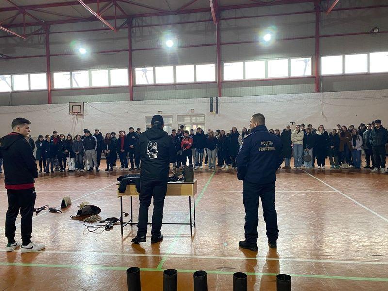 „Mesajul meu antidrog” se numește proiectul – organizat de doamna profesoară Baroi Lidia, în parteneriat cu Poliția de Frontieră Dorohoi – care a adus cele trei vedete în fața elevilor și a profesorilor colegiului. Desfășurată în sala de sport a liceului, activitatea a avut două componente:
