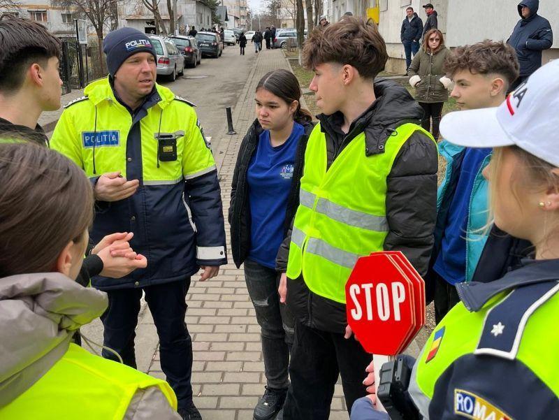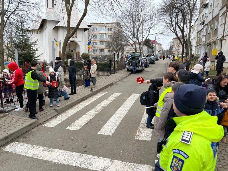 Echipați cu veste reflectorizante și indicatoare de semnalizare, sub îndrumarea unui cadru didactic și sub supravegherea polițiștilor, cei șase elevi ai patrulei școlare au dirijat circulația și au îndrumat pietonii să traverseze în siguranță.