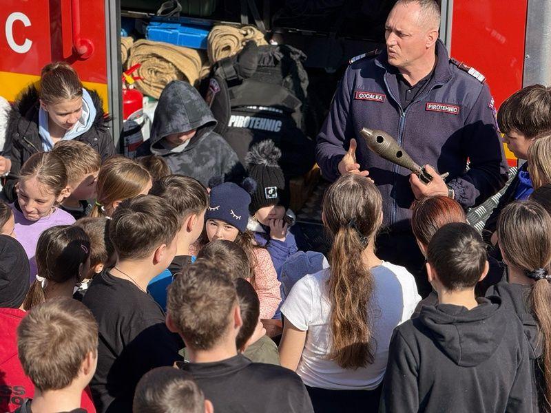 Cu acest prilej, elevii au avut ocazia să vadă mijloacele tehnice și echipamentele folosite de pompieri în misiuni, la fața locului fiind prezente două echipaje din cadrul Detașamentului Botoșani, cu autospeciala hidroperforare și pirotehnică.