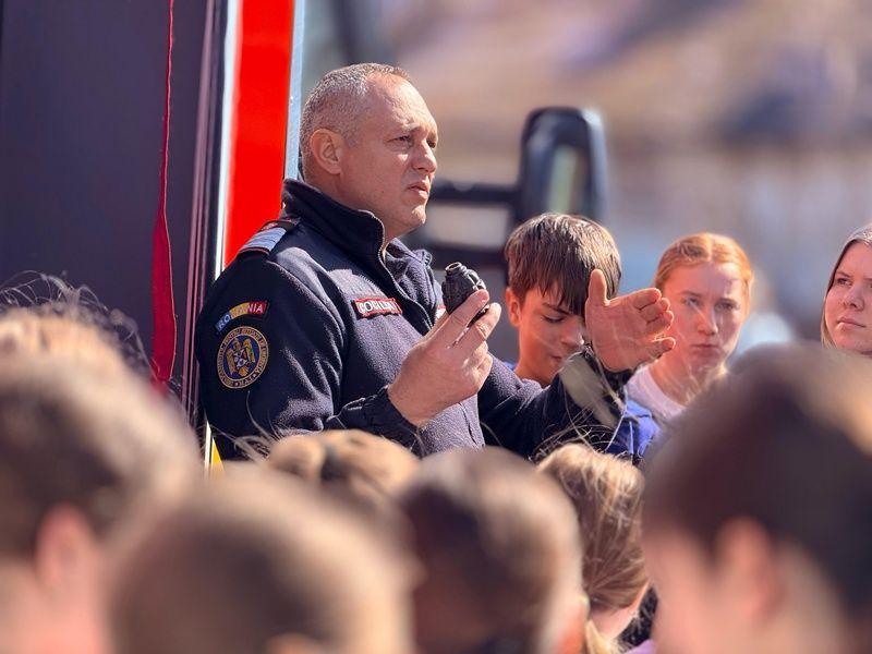 Studenții Facultății de Pompieri din cadrul Academiei de Pompieri "A.I. Cuza" București le-au explicat elevilor pașii pe care trebuie urmați pentru a îmbrățișa meseria de salvator.