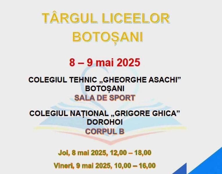 Târgul Ofertelor Educaționale 2025, proiect inițiat de Inspectoratul Şcolar Judeţean Botoșani, s-a desfășurat în perioada 8-9 mai 2025 la Colegiul Național „Grigore Ghica” din Dorohoi, instituție gazdă a celei de-a IV-a ediții a ofertelor educaționale.