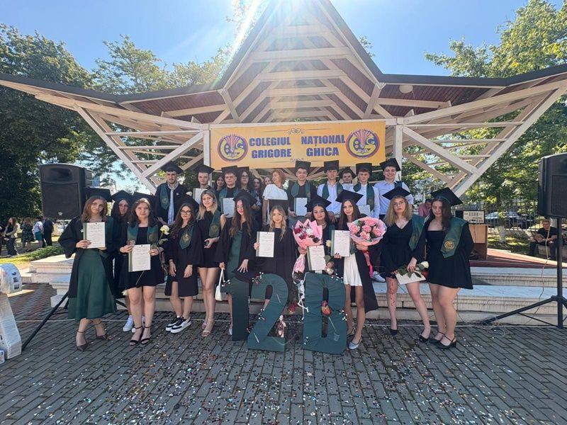 Continuând tradiția anuală, profesorii Colegiului Național Grigore Ghicași-au felicitat absolvențiipromoției 2021-2025 pentru munca depusă de-a lungul anilor de liceu, aceștia din urmă primind, cu emoție și mândrie, diplomele de absolvire.Amfiteatrul exterior -locul binecunoscut pentru evenimentele de această factură- a fost înțesat de un val de trăiri intense: bucurie, nostalgie, entuziasm, încredere, dar și un strop de melancolie. Fiecare diplomă a fost însoțită de aplauze, urări de succes și calde îmbrățișări din partea profesorilor diriginți și colegilor, membrilor familiei sau prietenilor.