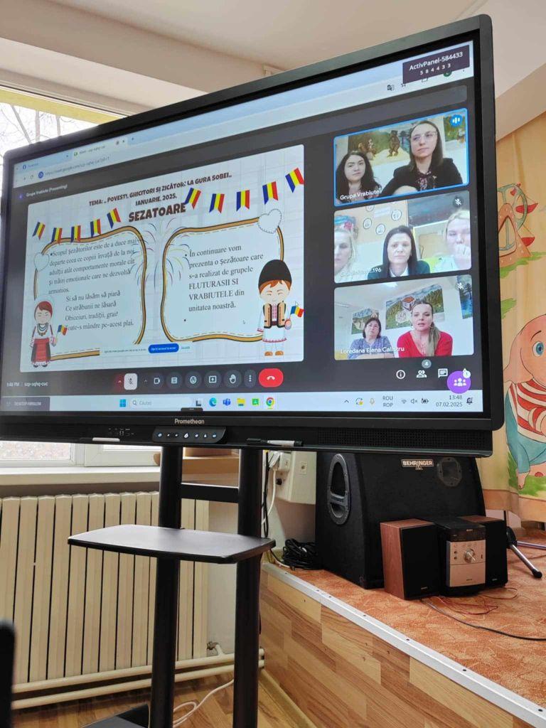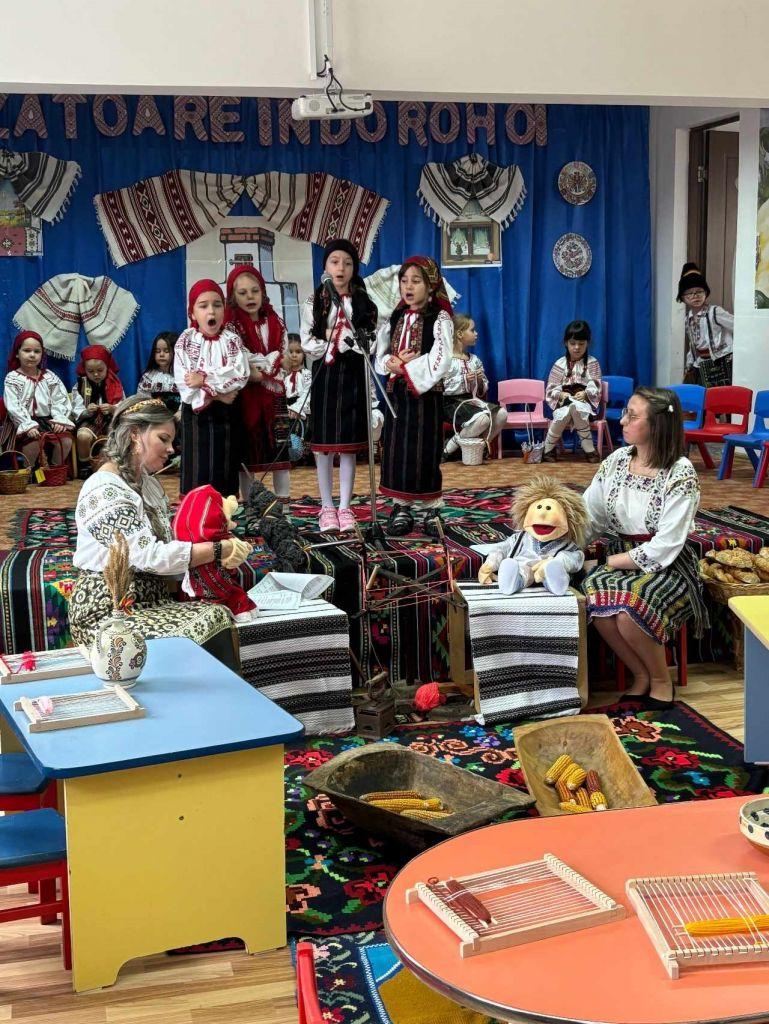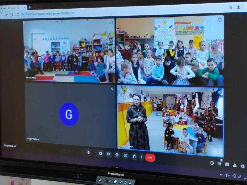 Preșcolarii au participat la activități de lecturare a unor povești terapeutice, au interacționat online prezentându-și localitatea natală, au prezentata obiceiuri și tradiții de Crăciun iar împreună cu părinții au realizat o Șezătoare unde au pus în valoare tradițiile și trăirile autentice specific poporului roman!