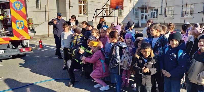 Pompierii din cadrul Inspecției de Prevenire le-au explicat copiilor principalele cauze care pot duce la izbucnirea incendiilor, modul corect de utilizare a surselor de foc, dar și cum trebuie să acționeze în momentul în care observă un început de incendiu. De asemenea, elevii au aflat informații utile despre apelarea corectă a numărului unic de urgență 112 și au primit sfaturi despre cum trebuie să procedeze în cazul producerii unui incendiu în incinta școlii: