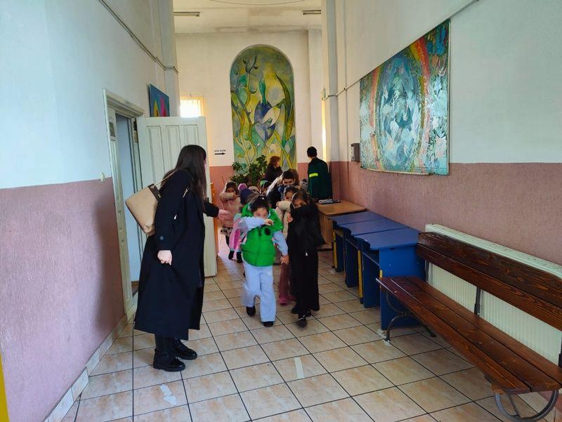 Întâlnirea dintre pompieri și elevi a debutat cu o simulare de evacuare în caz de incendiu, desfășurată cu participarea întregului personal al școlii. Exercițiu a urmărit verificarea modului de reacție al elevilor și cadrelor didactice.