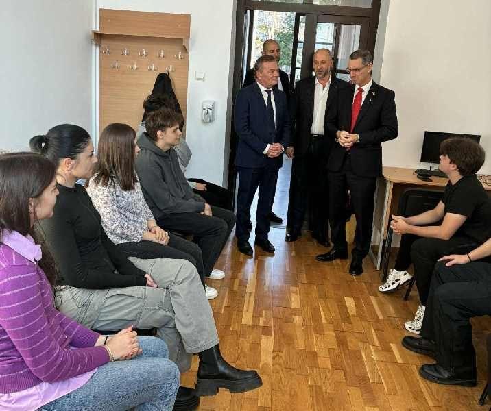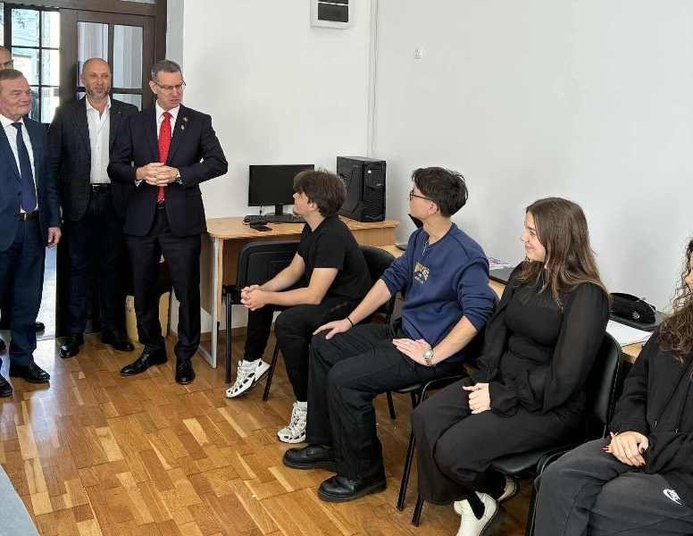 Excelența Sa a dorit să intre și într-o sală de clasă unde a dialogat cu elevii unei clase cu profil intensiv de limba engleză. Într-o atmosferă caldă și deschisă, acesta le-a vorbit tinerilor în limba engleză, subliniind importanța educației, a dialogului intercultural și a păcii între popoare.