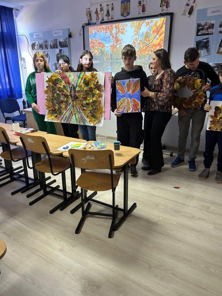 Activitatea „Culorile toamnei”, coordonată de doamnele director, prof. Apetria Gabriela și prof. Amatiesei Gabriela Cristina, a umplut sala de clasă de culoare și emoție. Prin lucrări realizate cu migală și imaginație, copiii au descoperit frumusețea naturii și armonia colaborării.