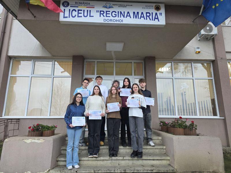 „Am fost mereu pasionată de științele exacte, dar în liceu am reușit să descopăr cu atât mai mult tainele chimiei în profunzime și să îmi dezvolt cunoștințele în ceea ce privește o nouă latură a acestei materii. Astfel, participarea la concursul "Academician Cristofor Simionescu" a fost o oportunitate de a-mi testa, cât și de a-mi pune în valoare munca. Prin prisma rezultatului obținut, am reușit să-mi arăt că perseverența și pasiunea sunt cele mai importante calități de care un elev poate să dispună și să reprezint cu drag Liceul "Regina Maria" într-o competiție națională.” (Sarariu Lorena)