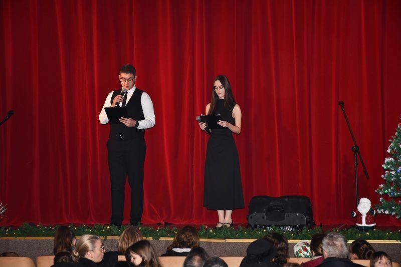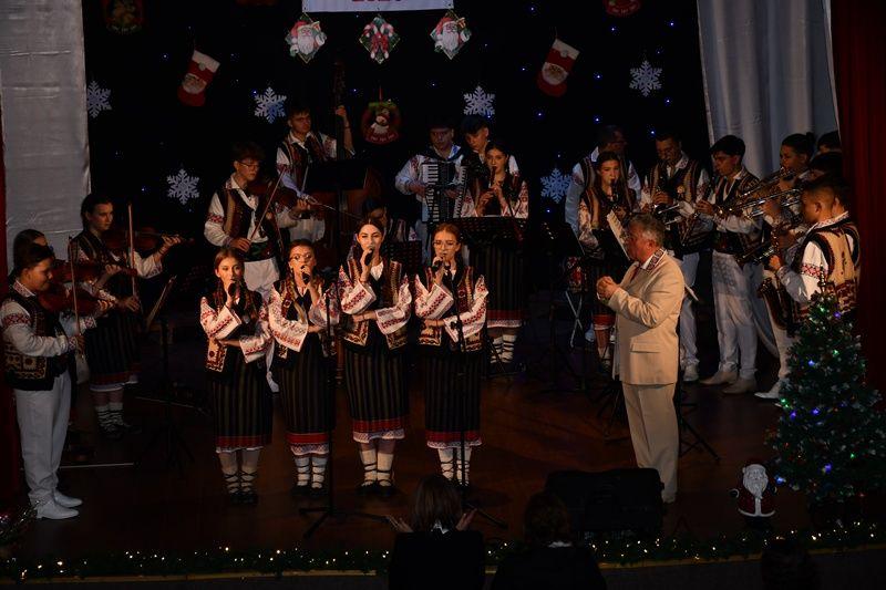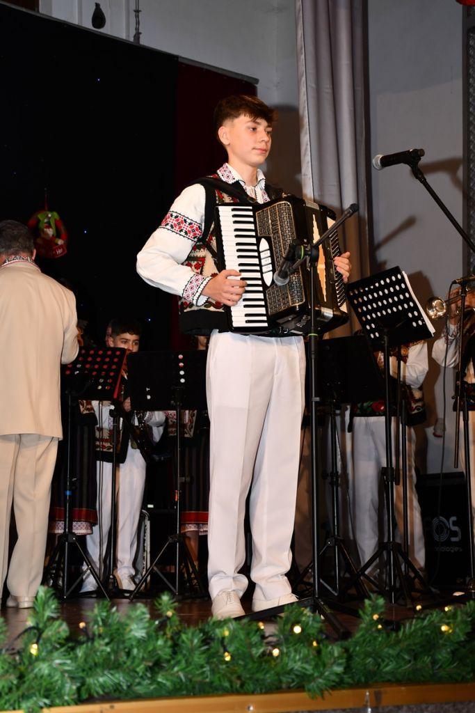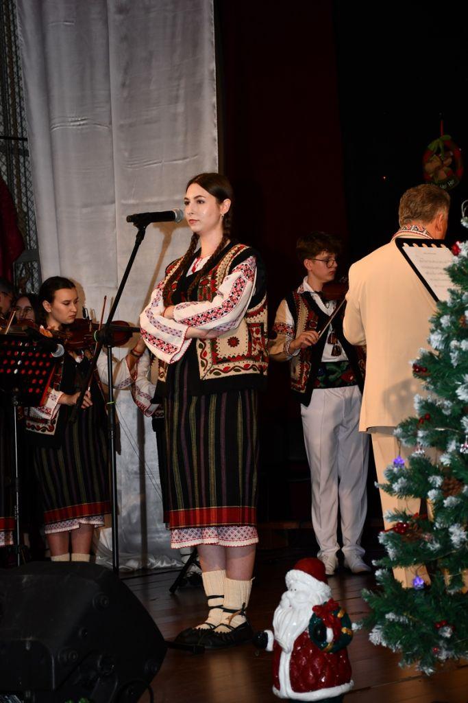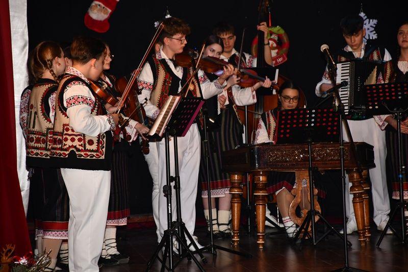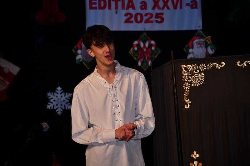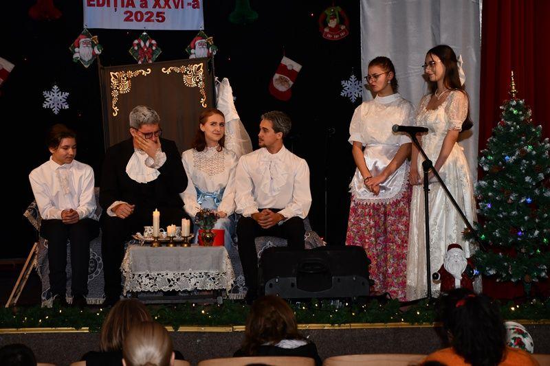 Spectacolul de luni, 8 decembrie 2025, a început cu sceneta savuroasă „Piatra din casă” după Vasile Alecsandri, moment de teatru interpretat de elevi ai cercului „Educație civică – Teatru”, coordonator – prof. Irina-Maria Miron. Seara a continuat cu un regal folcloric, sub bagheta dirijorului prof. Marcel Dupu. Orchestra „Mugurelul”, soliștii acompaniați și grupul vocal „Mugurelul” au cântat colinde, melodii de joc și de ascultare.