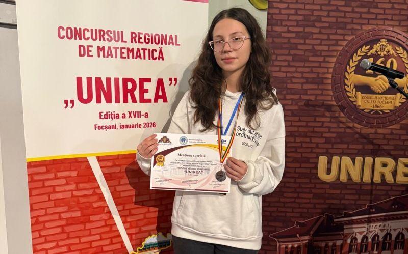 La ediția din acest an a Concursului Regional de Matematică „Unirea”, organizat de Colegiul Național „Unirea”, din Focșani, care a reunit 300 de elevi din întreaga regiune, eleva Marișcu Ioana Amelia, s a remarcat printr o performanță deosebită. Din cei 28 de participanți la clasa a IX a, Ioana Amelia a obținut prima mențiune, mențiune specială și medalia de argint.