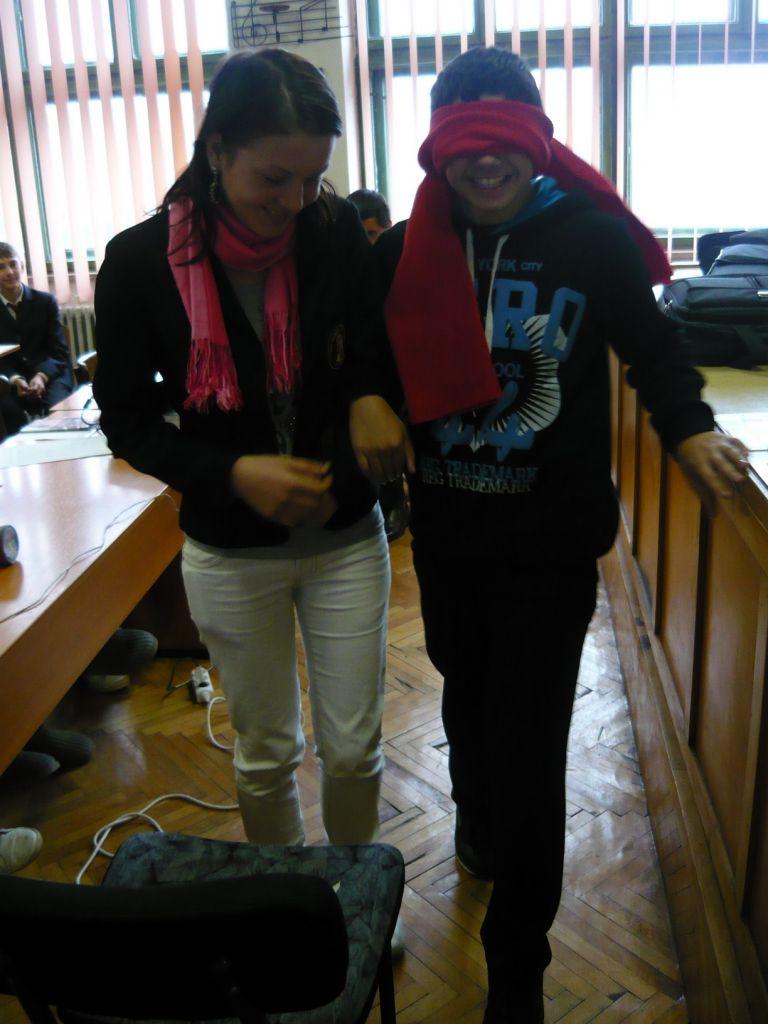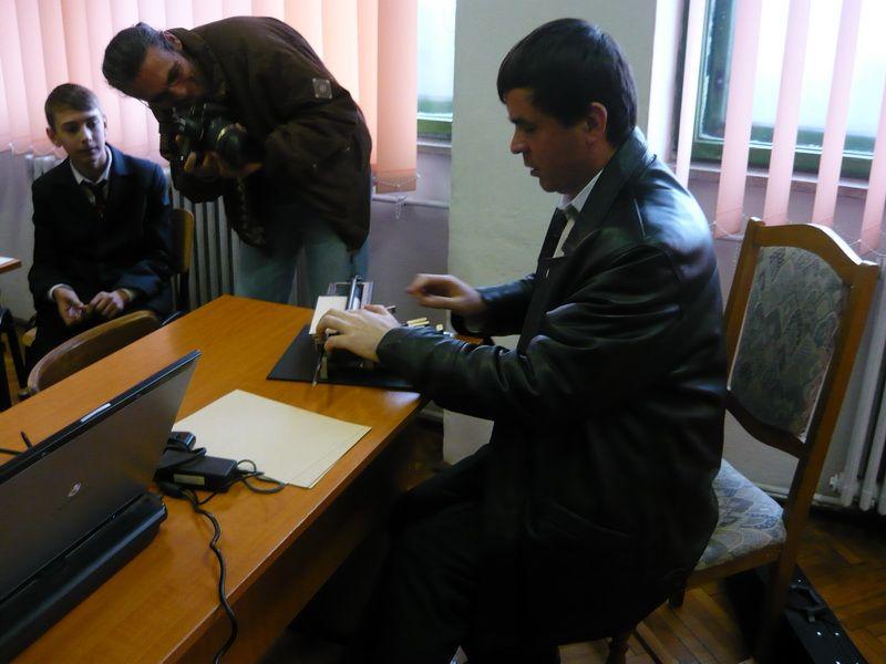 Cele mai atractive momente au fost reprezentate de câteva demonstrații ale invitatului, folosind instrumente și aparate de care se folosesc nevăzătorii în viața de zi cu zi, că : bastonul alb, picht-ul (mașina de scris în braille), jaws-ul (vocea sintetică instalată pe calculator) și șahul Braille.