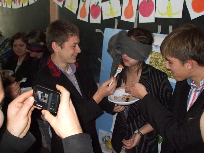 “Cireaşa de pe tort” a fost ultima parte a activităţii, mai exact ghicirea unor mâncăruri (mai mult sau mai puţin sănătoase) de către elevi, care nu şi-au putut folosi decât papilele gustative pentru a recunoaşte ingredientele şi produsul. (DorohoiNews.ro)