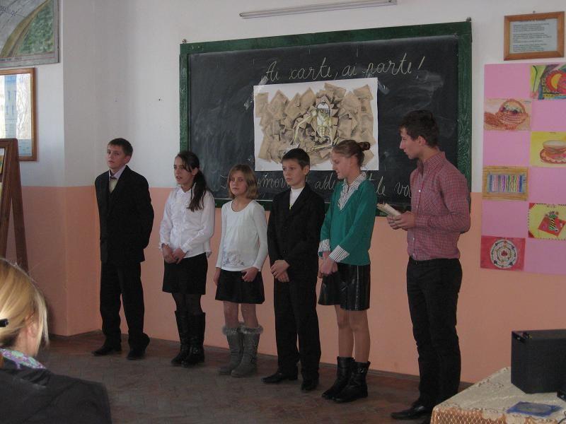 Invitaţi au fost elevii de la Grupul Şcolar Regina Maria Dorohoi, care au fost însoţiţi de profesoarele Amariei Iuliana, Şmocot Cezara, Foca Alina şi Ailoaie Felicia-Cristina. Deoarece de la moartea poetului şi semănătorului de cultură, Alexandru Vlahuţă, se vor împlini pe 19 noiembrie 2011, 92 de ani, elevii din clasa a-VI-a A, îndrumaţi de doamna profesoară Grădinariu Violeta, au făcut deschiderea acestui program artistic cu un recital de poezii.