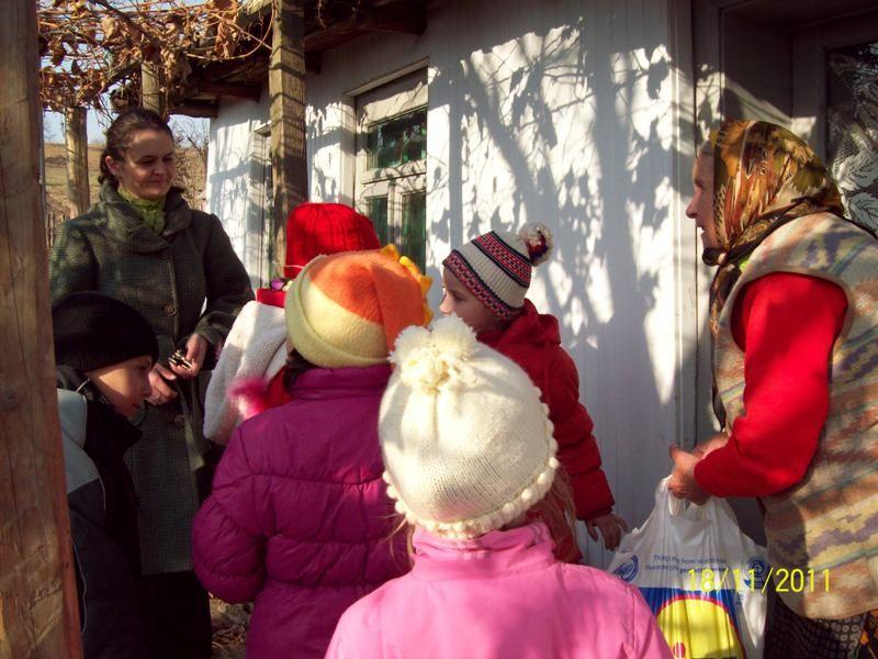 Şi vineri, 18 noiembrie au continuat seria acţiunilor desfăşurate în cadrul Săptămânii Educaţiei Globale. Copiii din clasa a II-a de la Şcoala cu clasele I-VIII Nr.4 Dorohoi, îndrumaţi de d-na prof. Chichioacă Emanuela au colectat şi au dăruit din tot sufletul alimente, legume şi fructe unor doamne în vârstă din cartierul şcolii. Bucuria întrezărită pe chipul bătrânelor, oaza de lumină adusă în inimile lor a fost cea mai mare mulţuminre pentru copii şi cadrele didactice ce i-au însoţit.