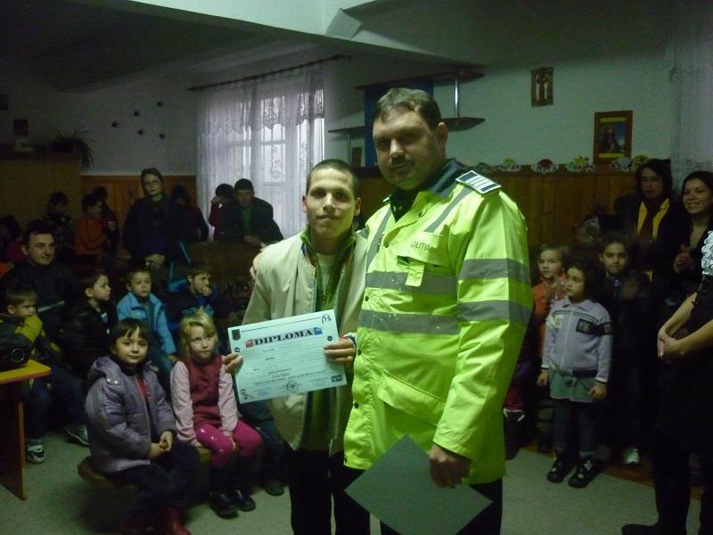 La finalul activitatii s-a desfasurat concursul „Educatie rutiera- Educatie pentru viata”, concurs in urma caruia agentii rutieri au acordat diploma fiecarei grupe participante.